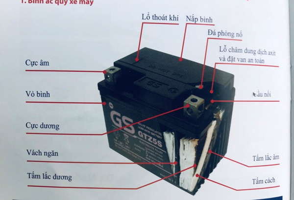 - Vỏ bình ắc quy : Là lớp nhựa cường lực chống cháy nổ đóng vi trò bảo vệ ắc quy.